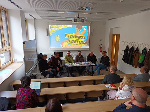V rámci VIII. kroatistických setkání v Brně jsme přivítali tři zahraniční hosty. Leszek Małczak (Katovice) ve svých přednáškách pojednal o ideologických a subversivních strategiích překládání chorvatské literatury v komunistickém Polsku. Lana Molvarec (Záhřeb) se zabývala fenoménem cestování a reprezentacemi Splitu v současné chorvatské próze. Aleksandra Wojtaszek (Krakov) představila poetiku současných chorvatských básnířek Dorty Jagić a Moniky Herceg. Tradiční přednáškový blok zahraničních odborníků doplnily dvě odpolední tematické sekce určené nejen pro akademickou veřejnost. První z nich jsme uspořádali ve spolupráci s Katedrou jihoslovanských a balkanistických studií FF UK a pod záštitou Českého komitétu balkanistů pod názvem Překládání z jihoslovanských literatur: česká perspektiva. Sekce se skládala z přednášky Petra Stehlíka Jihoslovanské literatury v českých knižních překladech po roce 1989: co, proč a jak se vydávalo? a kulatého stolu na téma Překládání z jihoslovanských literatur: současný stav, tendence a výhledy, jehož se zúčastnili překladatelé Jaroslav Otčenášek, Petr Mainuš, Libor Doležán, Jakub Novosad a nakladatel Josef Kodet (Nakladatelství Altenberg). Druhým tematickým blokem Válka v Bosně a Hercegovině (1992–1995): třicet let poté jsme si připomněli výročí těchto tragických událostí představením českých překladů dvou románů současných bosenskohercegovských autorů (Ivica Đikić: Beara: dokumentární román o genocidě ve Srebrenici, Brno 2021, přel. Petr Stehlík; Lana Bastašić: Chyť toho králíka, Praha 2022, přel. Jakub Novosad) za účasti jejich překladatelů a redaktorů Jana Dvořáka (Albatros Media – CPress) a Martiny Mašínové (Argo). Poté následovala projekce dokumentárního filmu Scream for Me Sarajevo (2017, r. Tarik Hodžić), který vypráví fascinující příběh o síle vzdoru a odhodlání v konfrontaci s válečnou zkázou, smrtí a strádáním v obležené metropoli Bosny a Hercegoviny.